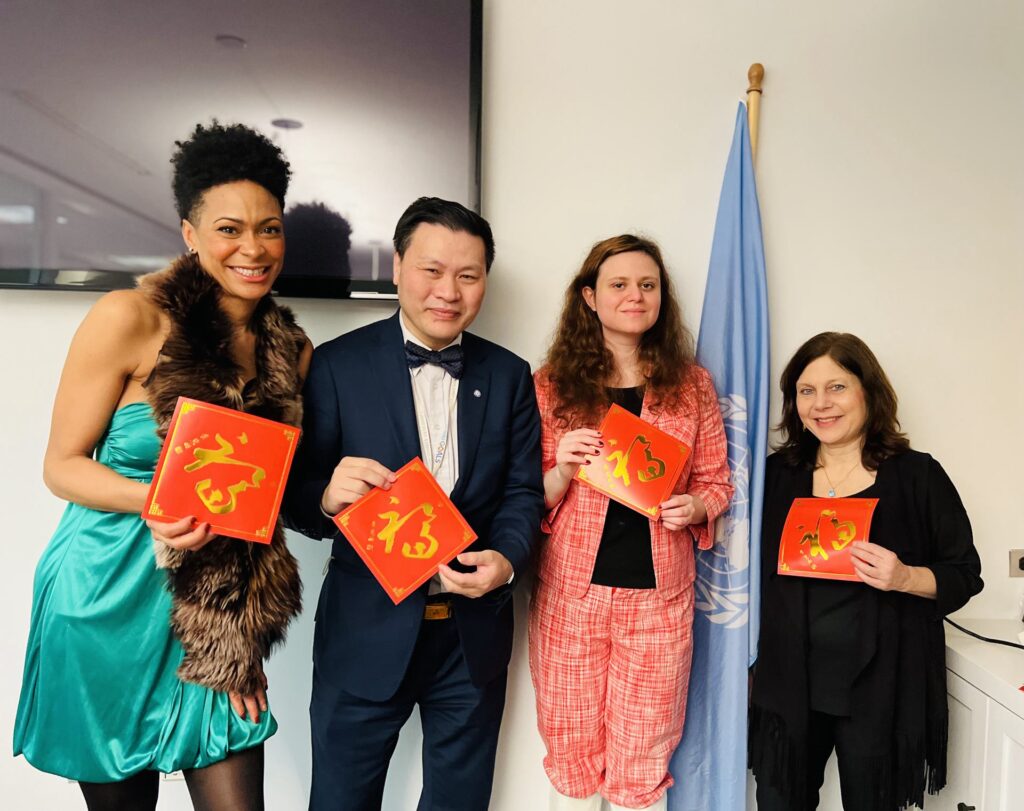 春节快乐!在中华民族传统节日春节即将到来之际,让我们一起步入兔年欢欢喜喜过大年。联合国网合集团十多年以来在驻扎纽约联合国总部,在此送上深深的祝福,迎接伟大的文明新时代。大爱在新年,我很高兴送上我最诚挚的问候。玉兔传奇象征着爱的活力和机敏,这是伟大的中华民族传统美德,慈悲喜舍,厚文养正;也是全人类面临着艰难和考验时所需要的高尚品质,爱诺一家,缘结千秋。我特别感谢中国与联合国作为强有力的伙伴关系,长期以来感谢伟大的祖国、親人与身边的朋友,感谢中国人民和世界各国人民对我们联合国网合集团的高度重视与大力支持。大爱2U让世界更美好!