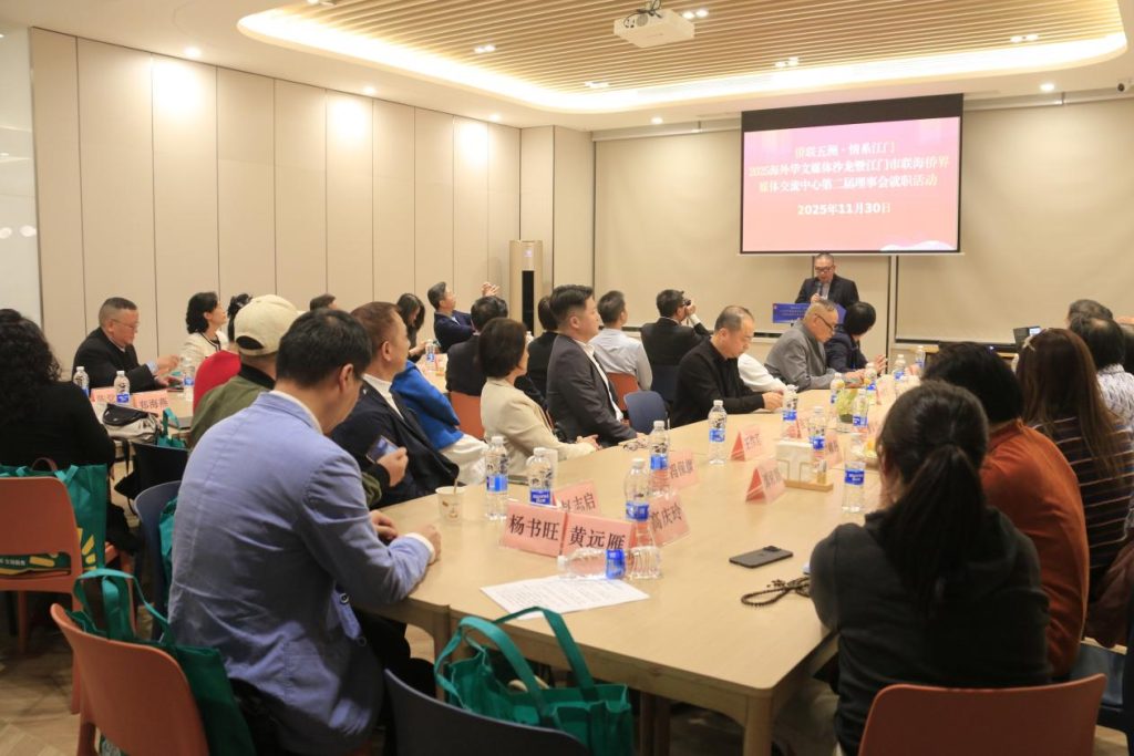 新青年国际传播中心讯:11月30日,由江门市侨联主办、江门市侨媒中心承办“侨连五洲·情系侨都”—2025海外华文媒体沙龙暨江门市联海侨界媒体交流中心第二届理事会就职活动在广东江门隆重举行。来自美国、德国、加拿大、泰国、印尼、巴拿马、委内瑞拉、香港、澳门等10个国家(地区)的20多家海内外华文媒体高层聚首江门“论剑侨都”,一起探讨和展望新时期海外华文媒体的时代使命、责任担当,为江门市新时期国际传播事业发展写下浓墨重彩的真知灼见。广东省侨联副主席、江门市侨联主席林春晖,江门市委统战部副部长吴少强等领导应邀参会并全程聆听了海外华媒人的高论。