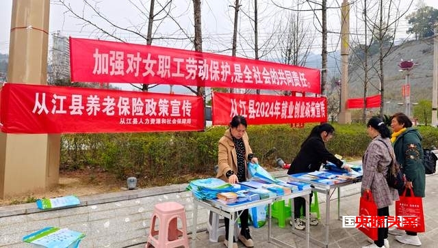 节日期间,从江县人力资源和社会保障局、从江农商银行的女干部职工走街头进社区,结合部门工作职能为群众开展相关政策宣传宣讲,围绕社会公众关心的女职工劳动保护、养老保险、就业创业、贷款创业扶持、防金融诈骗、假币识别等热点问题,接受群众的咨询,解答大家的疑问,并免费向群众散发先关宣传资料,赠送节日纪念品,受到社会的广泛好评,在当地营造了良好的社会氛围。