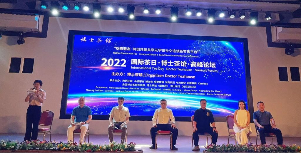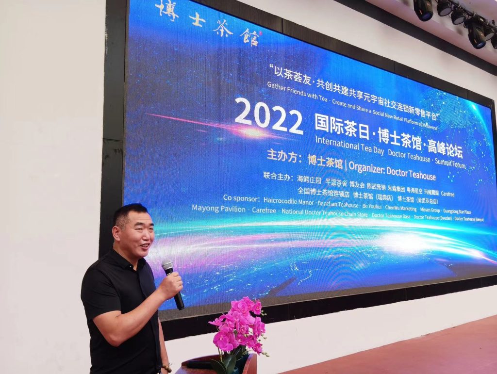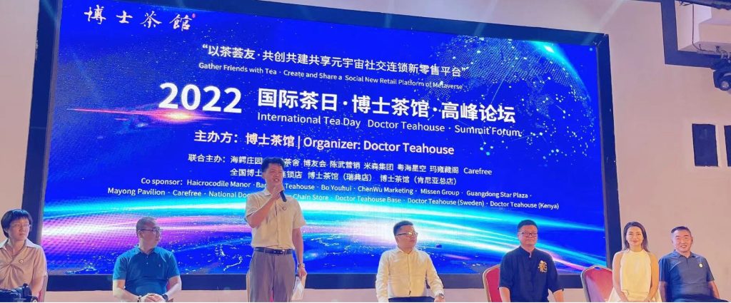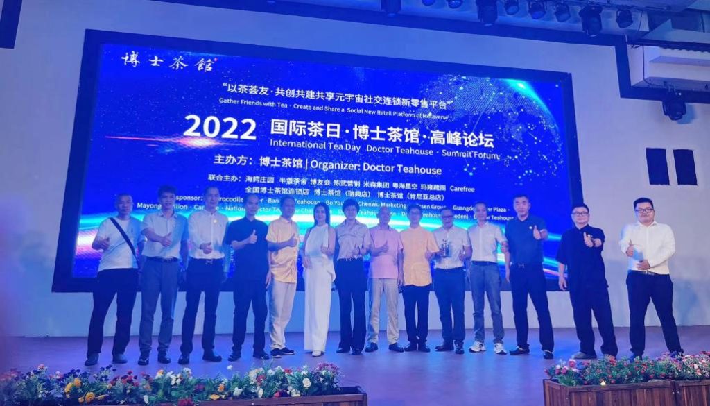 央媒头条据广东邓泗洲稿:“国际茶日”于第74届联合国大会宣布设立,时间为每年5月21日,体现了国际社会对于茶叶价值的认可与重视,对振兴茶产业,弘扬茶文化具有重要意义。为庆祝2022年联合国第三个“国际茶日”,赞美茶叶对经济、社会和文化的价值,鼓舞持续疫情下低迷受挫的消费同行,博士茶馆品牌方于“国际茶o日”期间,联合全国500多家品牌连锁店和海外连锁店,组织召开的国际茶日·博士茶馆高峰论坛在海鳄庄园隆重举办,通过博士茶馆品牌、平台、人才、产品、渠道、营销模式,打造共创共建共享元宇宙社交连锁新零售平台,不断为全国的同行带来增量价值。