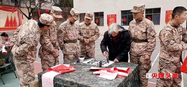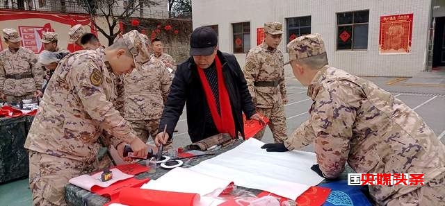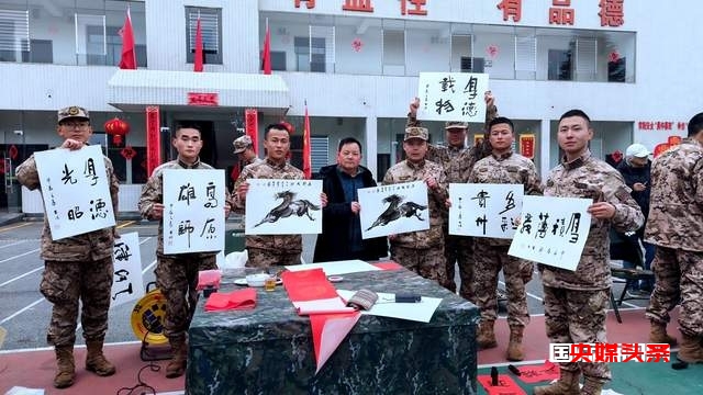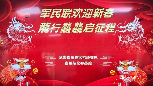 央媒头条贵阳消息【记者 王玉伦】:2024年2月8日,武警贵州总队机动支队与贵州茫父书画院,在这个新年即将来临的时刻,联手策划了一场别开生面的《军民联欢迎新春,龙行龖龘启征程》活动。此活动不仅是对春节期间坚守岗位的官兵的慰问,更是为了庆祝新春佳节的到来,深化军民关系,增强军民凝聚力。