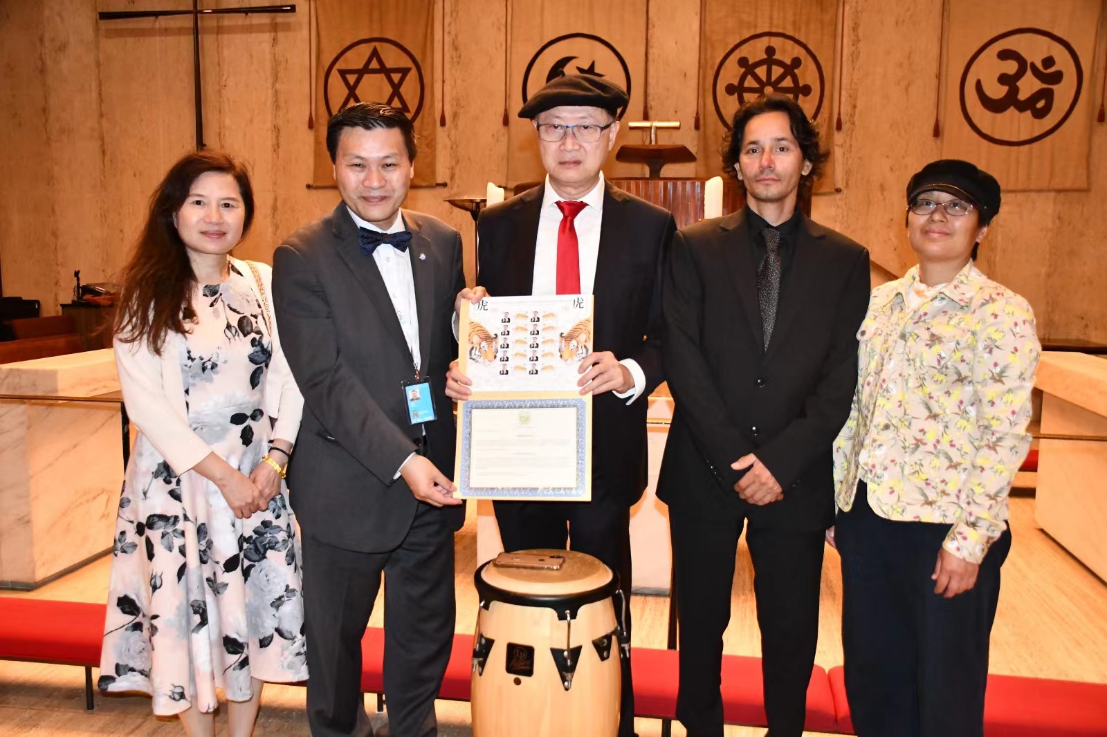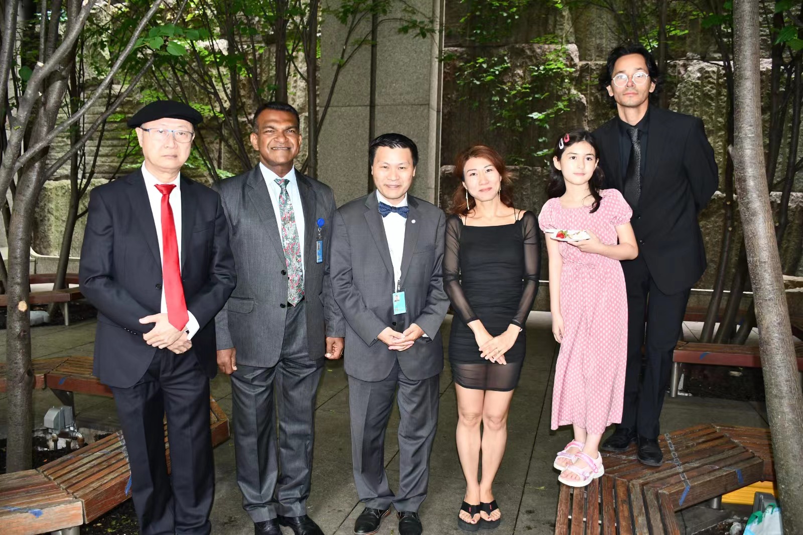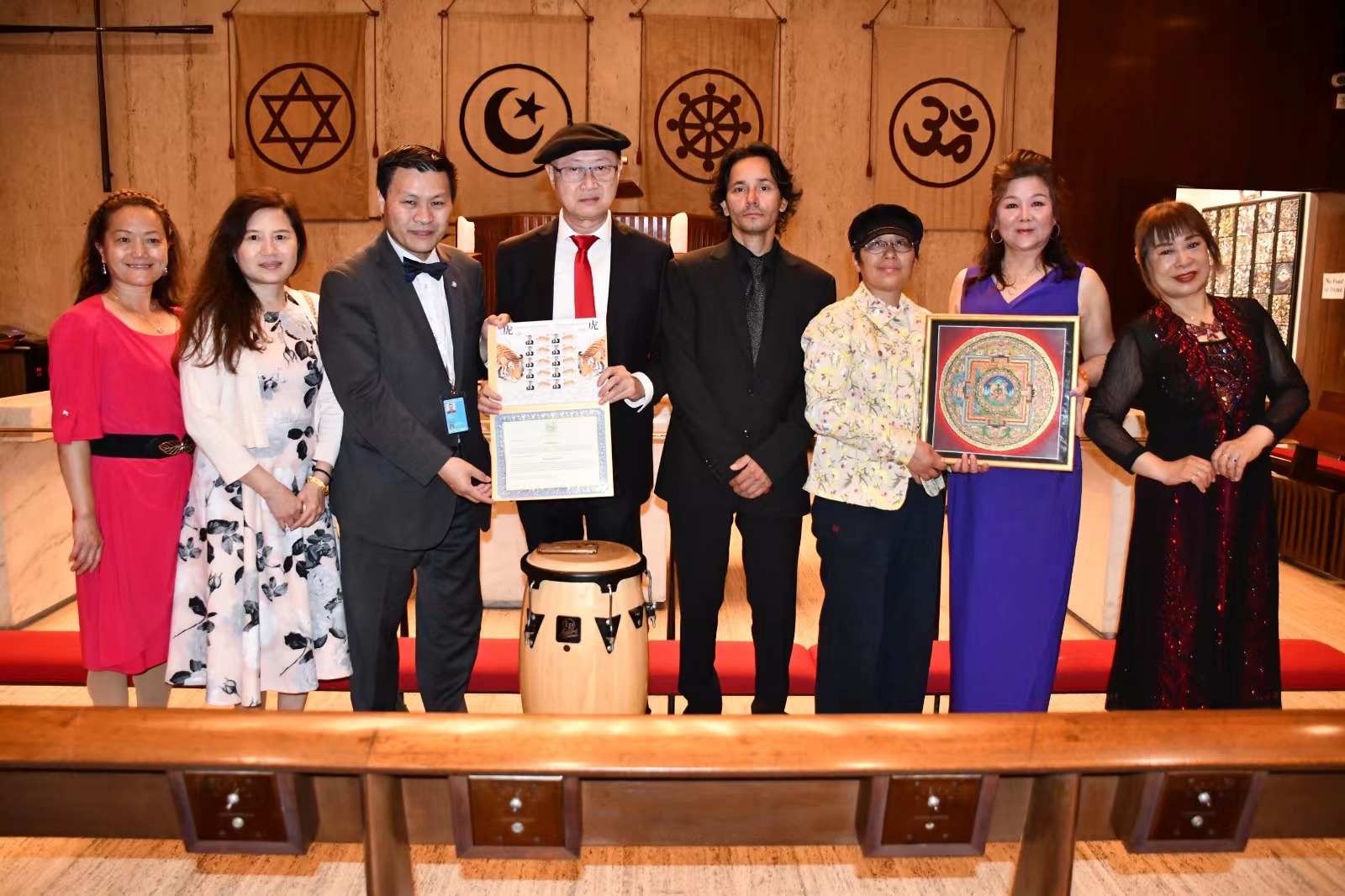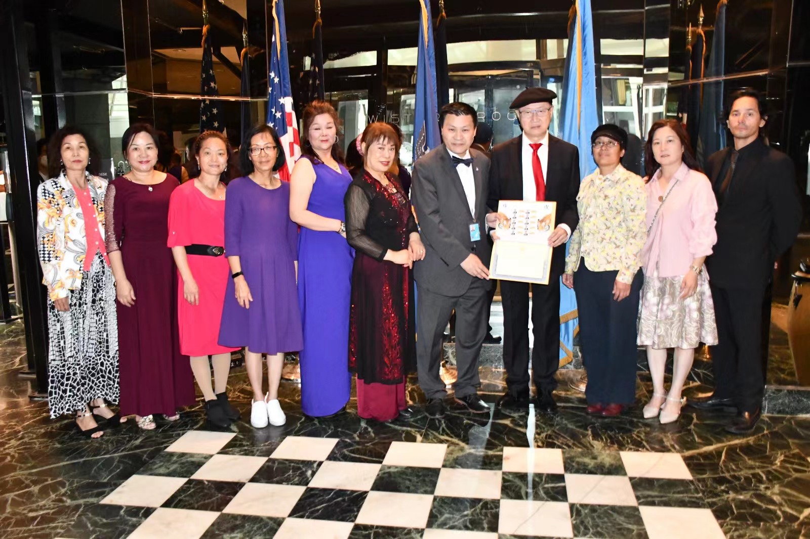 On Thursday, June 16, 2022, Chairman Andy Lin of United Nations Commutech Group hosted a press conference at the United Nations Plaza in Manhattan and formally announced Khenpo Sonam Tshering Yoezer Rinpoche’s United Nations Thangka Arts Exhibition Tour and Cultural Exchange Events which will start in early August 2022 in New York City. Venerable Khenpo Sonam Tshering Yoezer Rinpoche has been specifically trained in Thangka painting in Bhutan. His Thangka paintings have received great appreciations and admiration by many from different ethnic and cultural backgrounds worldwide and have brought auspicious energy to those who came into contact with him or his Thangka paintings. Chairman Andy Lin presented the invitation letter from United Nations Commutech Group to invite Venerable Khenpo Sonam Tshering Yoezer Rinpoche to come to the United States in this August to co-host the United Nations Thangka Arts Exhibition Tour and Cultural Exchanges with United Nations Commutech Group. Several precious Thangka paintings from Venerable Yoezer Rinpoche were displayed at the press conference. The press conference was well attended by distinguished guest Major General Harindra Peiris RWP RSP USP ndu Minister-Military Advisor from Sri Lanka’s Permanent Mission to the United Nations, successful professionals, and friends from all walks of life on this very auspicious day. United Nations Commutech Group has hosted several United Nations Charity Peace Concert this year. A celebration party for the successful completions of these concerts was hosted in conjunction with the press conference in recognition of those who have selflessly contributed to the successes. United Nations FDS First Day Stamp and Community Contribution Award were especially presented to musician Yu Wang for his contributions in promoting love and world peace and cultural exchanges in correspondence to the United Nations 17 Sustainable Development Goals. Chairman Andy Lin also extended his invitation to everyone who would like to join them at the United Nations by sharing ideas, talents and resources for world peace.