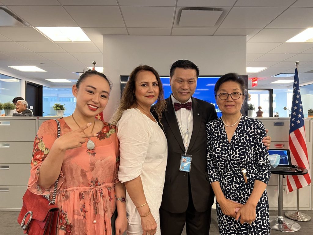 与会者来自不同的领域,有最时髦的元宇宙、高科技、投资、金融、媒体、教育、地产、留学、娱乐、媒体、画廊、饮料和酒庄葡萄酒等。参会嘉宾纷纷上台介绍了各自企业,分享参会感想,表达将在纽约为中美贸易付出更多努力和创造更大精彩的美好心愿。