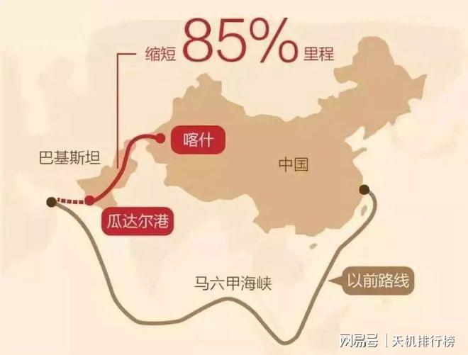瓜达尔港最早是由中国对巴基斯坦的援建项目,近几年巴国政府把使用权交给中国经营。目前瓜达尔港已经成为中国西部的出海口,中国在邻邦兄弟那里“疏通”了一条通向印度洋的出海口,从瓜达尔港管道延伸到伊朗的管道,就可以让中东到中国的油气,全程管道运输,无需油轮。有了瓜达尔港,中国通往中东这个能源根据地的运输航线,可完全不绕道马六甲海峡,直接从瓜达尔港上岸通过管道或高铁,进入喀什。中国-瓜达尔港正式开航,将彻底改变世界地缘战略格局,而喀什处于中国的接口处。
