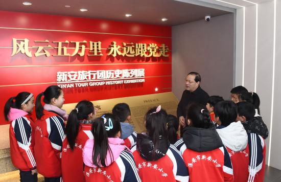 张大冬表示,要将红色教育资源与校园文化建设、与课程、教材建设有机融合,让红色育人资源进校园、进教材、进课堂、进头脑,形成常态长效的红色育人机制;充分利用得天独厚的新旅育人资源,构建新旅文化课程,开展“新旅故事、歌曲进课堂”活动,编写新旅故事读本,开展“小好汉永远跟党走”校园主题文化创建,将红色教育融入日常、化作经常。