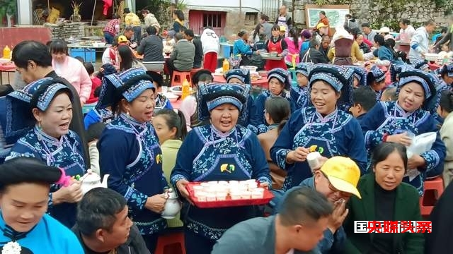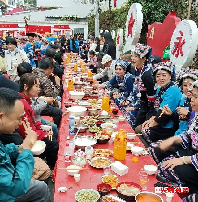 长桌宴是布依族的一种传统宴请方式,也是黄连村的一大特色。长长的桌子摆在村中广场上,村民们围坐在一起,共同享受美食,畅谈生活。