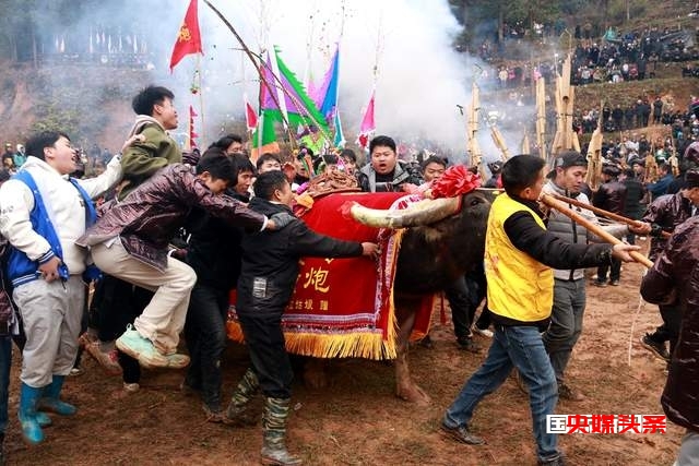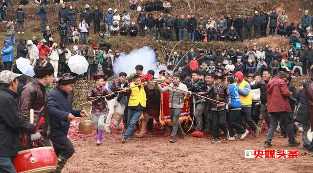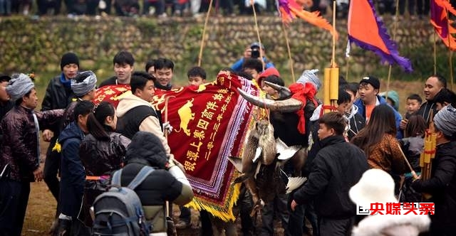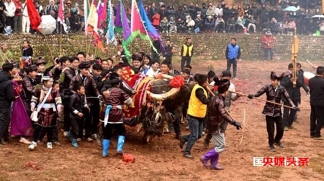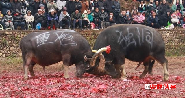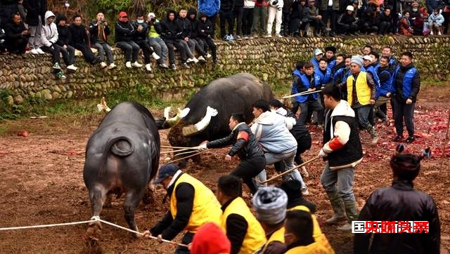 传统民间斗牛文化活动在贵州从江岜扒村平六斗牛塘举行,吸引了众多游客和民众前来观赏。斗牛赛场上,牛王们展现着顽强的斗志,场面异常火爆,观众们在一片欢呼声中感受着浓浓的民族风情。